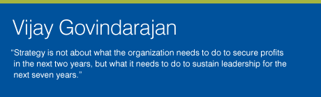 Vijay Govindarajan (VG) works exclusively in the area of strategy with the CEO and top management team. His coaching tends to be with that small group, rather than one on one, and focuses more on business issues than behavioral ones.